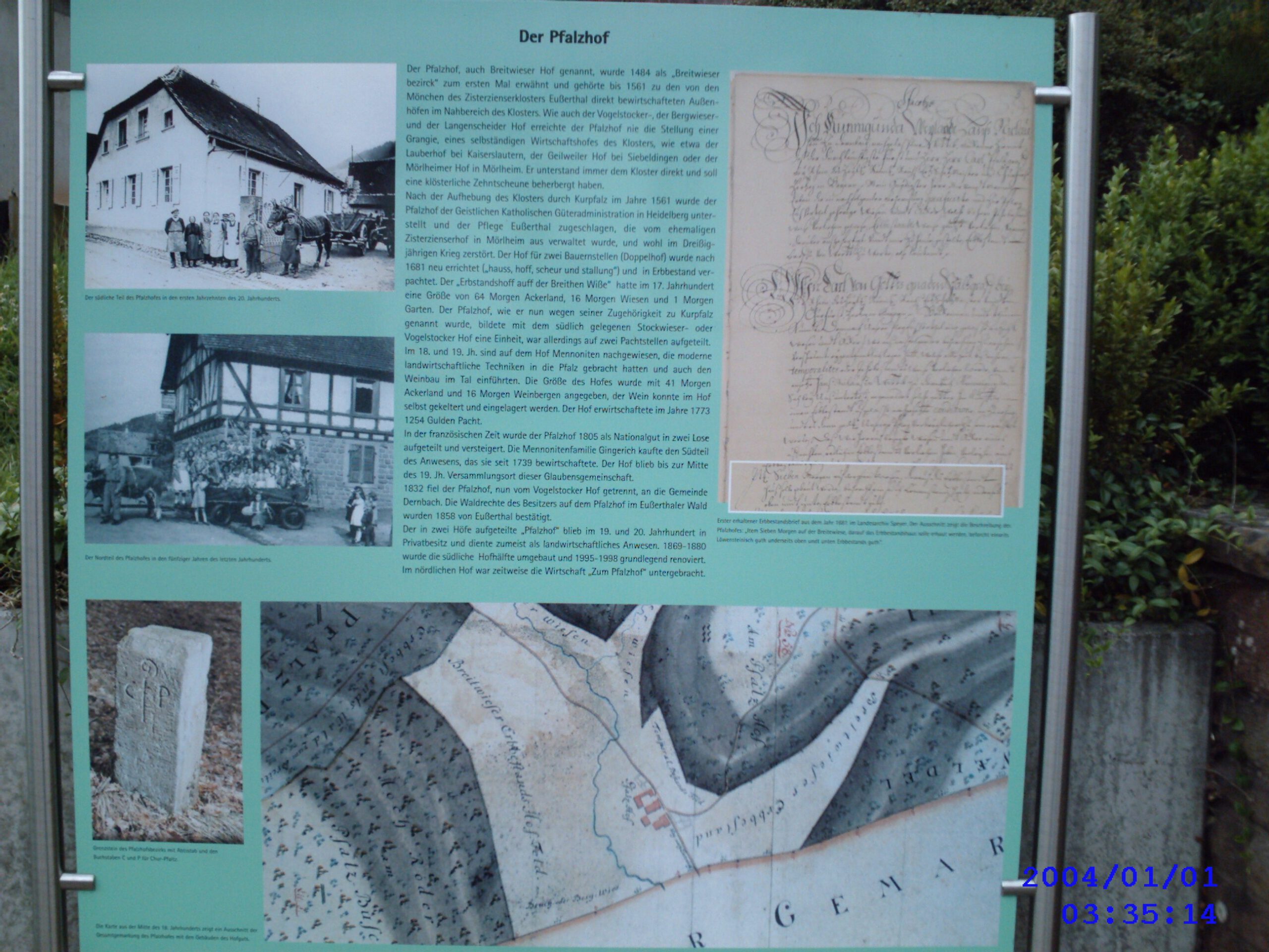 In der Französischen Zeit wurde der Pfalzhof 1805 als Nationalgut in zwei Lose aufgeteilt und versteigert. Die Mennonitenfamilie Gingerich kaufte den Südteil des Anwesens, den sie seit der ersten Hälfte des 18. Jh. bewirtschaftete. Der Hof blieb bis zur Mitte des 19. Jh. Versammlungsort dieser Glaubensgemeinschaft.
